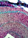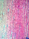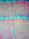 Morphology Ch, 15 - 50cm Ecology hill and mountain zone, dry site Chorology Mediterranean Xylem Distinct rings, semi-ring porous, vessels in radial multiples, tangential rows of vessels, simple perforations, paratracheal parenchyma, thin walled marginal parenchyma, ray width 3-4 cells, Xylem-Code Phloem Tangential layers of collapsed sieve cells, groups of sclereids in cortex. Remarks Bargème, Provence, F Explanations For explanations please see the Feature Characteristics. | Cross section Tangential section Radial section Bark | |