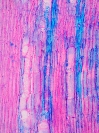 Morphology H, 20 - 100cm Ecology subalpine zone, moist site Chorology W-Alps Xylem Distinct rings, semi-ring porous, vessels solitary, in groups, in radial multiples, simple perforations, paratracheal parenchyma, thin walled marginal parenchyma, ray width 3-6 cells, Xylem-Code Phloem No tangential layers of collapsed sieve cells, radial rows of parenchyma cells, distinct ray dilatations, groups of sclereids in cortex. Remarks Champex, Botanical Garden, Valais, Switzerland Explanations For explanations please see the Feature Characteristics. | Cross section Tangential section Radial section Bark | |