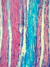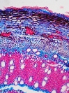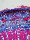 Morphology Ch, 40 - 60 cm Ecology hill and mountain zone, dry site Chorology Mediterranean, W-Europe Xylem Distinct rings, semi-ring porous, vessels solitary, simple perforations, paratracheal parenchyma, thin walled marginal parenchyma, rayless. Xylem-Code Phloem Tangential layers of collapsed sieve cells, groups of sclereids in cortex. Remarks Champex, Botanical Garden, Valais Explanations For explanations please see the Feature Characteristics. | Cross section Tangential section Radial section Bark | |