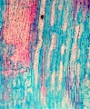 Morphology H, 15- 60cm Ecology Mountaine and subalpine, medium site Chorology Western Alps Xylem Distinct rings, Indistinct rings, semi-ring porous, vessels in radial multiples, simple perforations, tangential bands with thick walled fibers, paratracheal parenchyma, thin walled marginal parenchyma, ray width 3-9 cells, Xylem-Code Phloem No tangential layers of collapsed sieve cells, distinct ray dilatations, radial groups of sclereids in cortex. Remarks Champex, Botanical Garden, Valais, Switzerland Explanations For explanations please see the Feature Characteristics. | Cross section Tangential section Radial section Bark | |