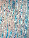 Morphology T, H, 10-60 cm Ecology Hill zone, dry site Chorology Mediterranean Xylem Only one ring, vessels in radial multiples, tangential rows of vessels, simple perforations, paratracheal parenchyma, ray width 2-3 cells, Xylem-Code Phloem No tangential layers of collapsed sieve cells, radial rows of parenchyma cells, Uniform cortex. Remarks Sion, Valais,Switzerland Explanations For explanations please see the Feature Characteristics. | Cross section Tangential section Radial section Bark | |