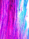 Morphology H 15-35cm Ecology mountaine to subalpine zone, dry site Chorology W-Alpine Xylem Distinct rings, slightly ring shake, semi-ring porous, vessels solitary, vessel diameter 20 - 50µ, vessels thick walled (2µ), fibers absent? parenchyma thin walled between fibers, rayless, crystals absent. Xylem-Code Phloem Uniform anatomy, sieve elements and parenchyma in radial rows, without crystals, with crystal druses in cortex. Remarks Mt. Ventoux, Provence, France Explanations For explanations please see the Feature Characteristics. | Cross section Tangential section Radial section Bark | |