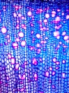 Morphology H 20-50cm Ecology hill to mountaine zone Chorology Mediterranean, mountaine Xylem Distinct rings, semi-ring porous, vessels solitary, vessel diameter 20 - 50µ, vessels thick walled (2µ), fibrs absent? parenchyma thin walled between fibers, rayless, with crystal druses in parenchyma. Xylem-Code Phloem Uniform anatomy, sieve elements and parenchyma in radial rows, with crystal druses. Remarks Massiv des Maures, Provence, France Explanations For explanations please see the Feature Characteristics. | Cross section Tangential section Radial section Bark | |