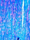 Morphology H, C, 5-15cm Ecology subalpine, dry site Chorology w-alpine Xylem Distinct rings, semi-ring porous, vessels solitary and in short radial multiples, vessel diameter 20 - 50µ, vessels thick walled (2µ), thin walled parenchyma between vessels, rayless or with some large rays, crystal druses in large rays. Xylem-Code Phloem Uniform anatomy, sieve elements and parenchyma in radial rows, crystal druses in phloem. Remarks Mt. Cenis- Pass, France Explanations For explanations please see the Feature Characteristics. | Cross section Tangential section Radial section Bark | |