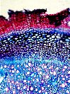 Morphology H, 5-15cm Ecology montaine and subalpine, dry site Chorology W-Alpine Xylem Distinct rings, semi-ring porous, vessels solitary, vessel diameter 20 - 50µ, vessels thick walled (2µ), thin walled parenchyma between vessels, rayless, crystal druses in parenchyma. Xylem-Code Phloem Uniform anatomy, sieve elements and parenchyma in radial rows, crystal druses in cortex. Remarks Maurienne, France Explanations For explanations please see the Feature Characteristics. | Cross section Tangential section Bark | |