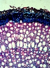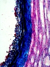 Morphology H,, 30 cm Ecology mountaine, dry meadow Chorology Rocky mountain Xylem Distinct rings, semi-ring porous, diffuse porous, vessels solitary, simple perforation, vessel diameter 20 - 50µm, apotracheal parenchyma, paratracheal parenchyma, rayless. Xylem-Code Phloem Uniform cortex. Few rhaphids present. Explanations For explanations please see the Feature Characteristics. | Cross section Tangential section Radial section Bark | |