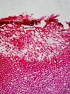 Morphology T, 2 - 15 cm Ecology alpine, medium site Chorology Arctic- Alpine Xylem Only on ring, vessels in radial multiples, vessel diameter <20 µm, parenchyma no to recognize, rayless. Probably little spots of fibers outside of the cambium ¿ included phloem? No phloem in pith. Xylem-Code Phloem Tangential layers of sieve cells. Remarks Gornergrat, Zermatt, Valais, Switzerland 2800m Explanations For explanations please see the Feature Characteristics. | Cross section Bark | |