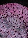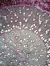 Morphology h Ecology hill Chorology North America Xylem Distinct rings, semi-ring porous porous, vessels in groups, simple perforations, thin-walled fibers, parenchyma apotracheal, uniseriate rays with upright cells. Xylem-Code Phloem With large lactifers Remarks Michigan, USA Botanical Garden. Leg. Dietz Explanations For explanations please see the Feature Characteristics. | Cross section Bark | |