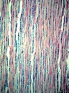 Morphology shrub Ecology mountain Chorology Arabia Xylem Indistinct rings, diffuse porous, vessels in radial multiples, simple perforations, thin-walled fibers, parenchyma apotracheal, heterogeneous uni- and biseriate rays with 3-5 upright cells, few isodiametric crystals in parenchyma cells Xylem-Code Phloem Small groups of collapsed sieve cells, radial rows of parenchyma cells, lactifers in cortex. Remarks Rockfield, 2200m.a.s.l., Nizwa, Oman Explanations For explanations please see the Feature Characteristics. | Cross section Tangential section Radial section Bark | |
