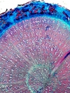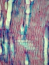 Morphology T, 10-30cm Ecology Subtropical, dry site Chorology S-European Xylem Only one ring, vessels in radial multiples, tangential rows of vessels, vestured pits, simple perforations, paratracheal parenchyma, ray width 3-6 cells Xylem-Code Phloem No tangential layers of collapsed sieve cells, distinct ray dilatations, groups of sclereids in phloem and cortex. Explanations For explanations please see the Feature Characteristics. | Cross section Tangential section Radial section Bark | |