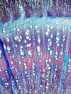 Morphology T, 20 ¿ 60 cm Ecology Subtropical, medium site Chorology Mediterranean, subcosmopolitean Xylem Only one ring, vessels solitary and in short radial multiples, tangential rows of vessels, simple perforations, paratracheal parenchyma, thin walled marginal parenchyma, ray width 3-6 cells. Xylem-Code Phloem No tangential layers of collapsed sieve cells, of sclerenchymatic groups, radial rows of parenchyma cells, distinct ray dilatations, groups of sclereids in phloem and cortex. Uniform cortex Explanations For explanations please see the Feature Characteristics. | Cross section Tangential section Radial section Bark | |