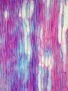 Morphology T, 1 -60cm Ecology Hill zone, medium site Chorology Mediterranean, cosmoploitean Xylem Only one ring, in radial multiples, tangential rows of vessels, vestured pits, simple perforations, paratracheal parenchyma, rayless. Xylem-Code Phloem Tangential layers of collapsed sieve cells, groups of sclereids in phloem and cortex. Explanations For explanations please see the Feature Characteristics. | Cross section Tangential section Radial section Bark | |