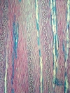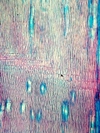 Morphology H, 40 - 60 cm Ecology Hill zone, medium site Chorology S-European, montaine Xylem Distinct rings, semi-ring porous, vessels in groups and in radial multiples, tangential rows of vessels, vestured pits, simple perforations, paratracheal parenchyma, ray width 3-6 cells. Xylem-Code Phloem No tangential layers of collapsed sieve cells, distinct ray dilatations, groups of sclereids in phloem and cortex. Explanations For explanations please see the Feature Characteristics. | Cross section Tangential section Radial section Bark | |