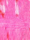 Morphology H, 20-60cm Ecology Foothills, medium sites Chorology Mediterranean, subcosmopolitean Xylem Distinct rings, diffuse porous, vessels short radial multiples, big vessel pits, vestured pits, paratracheal parenchyma, distinct heterogeneous rays with 3-5 cells, with sheet cells. Xylem-Code Phloem No tangential layers of collapsed sieve cells, radial rows of parenchyma cells, distinct ray dilatations, groups of sclereids in the phloem and the primary bark. Remarks Cross section: Explanations For explanations please see the Feature Characteristics. | Cross section Tangential section Radial section | |