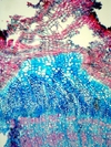 Morphology Ch, 15-30cm Ecology thermophile bush zone, dry site Chorology Macaronesian Xylem Distinct rings, diffuse porous, vessels solitary, vessel diameter 20 ¿ 50mµ, vessels thick walled (2mµ), thin walled parenchyma between fibers, thin walled marginal parenchyma, intra-annual tangential bands of fibers, unlignified ray cells, ray width 3-6 cells, crystals absent. Xylem-Code Phloem With sieve cell groups, dilatations, crystals absent Explanations For explanations please see the Feature Characteristics. | Cross section Tangential section Radial section Bark | |