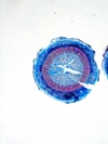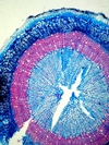 Morphology T, 10-20cm Ecology Hill zone, dry site Chorology Europoean Xylem Only one ring, vessels solitary, vessel diameter 15-20mµ, vessels thick walled (2mµ), central part with pervasive parenchyma,in the peripheric part theparenchyma is not to recognize, rayless, crystals absent. Xylem-Code Phloem Uniform anatomy, without crystals. Explanations For explanations please see the Feature Characteristics. | Cross section Tangential section Radial section Bark | |