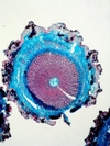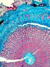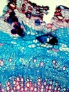 Morphology H, 5-10cm Ecology thermophile bush zone, dry site Chorology Macaronesian Xylem Distinct rings, diffuse porous, semi-ring porous, vessels solitary, diameter 15- 22 mµ, vessels thick walled (2mµ), parenchyma not to recognize, ray width 1-2 cells, rayless in the center crystals absent, included phloem. Xylem-Code Phloem Uniform anatomy, few sclerenchymatic cell groups, without crystals. Explanations For explanations please see the Feature Characteristics. | Cross section Tangential section Radial section Bark | |