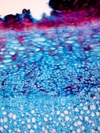 Morphology H, 5-10cm Ecology subalpine zone, medium site Chorology Eurasian, N-Am. Xylem Indistinct rings, diffuse porous, vessels solitary, vessel diameter <20mµ, vessels thick walled (2mµ), thin walled parenchyma between fibers, rayless, few crystal druses, included phloem. Xylem-Code Phloem Uniform anatomy, crystal druses absent. Explanations For explanations please see the Feature Characteristics. | Cross section Bark | |