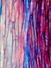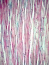 Morphology T, 5-15cm Ecology thermophile bush zone, dry site Chorology European, Macaronesian Xylem Only one ring. vessels in radial in groups, vessel diameter 20 ¿ 30mµ, parenchyma not to recognize, rayless, crystals absent. Xylem-Code Phloem Uniform anatomy, crystals absent. Explanations For explanations please see the Feature Characteristics. | Cross section Tangential section Radial section Bark | |