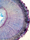 Morphology H, 20-60cm Ecology Hill zone, dry site Chorology Eurasian Xylem Distinct rings, semi-ring porous, vessels solitary, vessel diameter 20-30mµ, vessels thick walled (2mµ), thin walled parenchyma between fibers, intra-annual tangential bands of fibers, rayless. Xylem-Code Phloem Uniform anatomy, without crystals. Explanations For explanations please see the Feature Characteristics. | Cross section Tangential section Radial section Bark | |