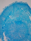 Morphology T, 5-10cm Ecology Hill zone, dry site Chorology European Xylem Only one ring. vessels solitary, vessels in radial in groups, vessel diameter <20mµ, vessels thick walled (2mµ), thin walled parenchyma between vessels, rayless, crystals absent, included phloem. Xylem-Code Phloem Uniform anatomy, few sieve cell groups crystals absent. Explanations For explanations please see the Feature Characteristics. | Cross section Bark | |