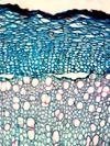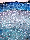 Morphology H, 20-60cm Ecology Hill and mountaine zone, dry site Chorology European Xylem Distinct rings, semi-ring porous,vessels solitary, simple perforation, vessel diameter 20 - 30µm, pervasive parenchyma, rayless, rhaphis present. Xylem-Code Phloem Uniform cortex. Rhaphids present. Explanations For explanations please see the Feature Characteristics. | Cross section Tangential section Radial section Bark | |