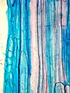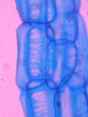 Morphology Hyd Ecology Hill and mountain zone Chorology Eurasia and N-America Xylem Indistinct rings, separated vascular bundles (siphonostele) vessels in radial multiples, scalariform inter-vessel pits scalariform perforations, inside of the bundles groups of thick-walled fibers, pervasive parenchyma, rayless. Xylem-Code Phloem Cortex with numerous vertically elongated cavities. With cortical vascular bundles. The pith show a similar structure as the cortex. Explanations For explanations please see the Feature Characteristics. | Cross section Tangential section Radial section Bark | |