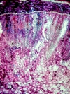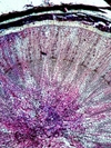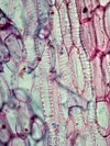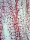 Morphology H, succulent plant, 10-40 cm Ecology subalpine Chorology Rocky mountains Xylem Distinct rings but only visible in polarized light, semi-ring porous, vessels solitary and in groups, often vesselless zone (intervascular parenchyma). Vessel diameter 20 ¿ 50µm, vessel frequency 100-200 mm2, vessel frequency 200-500 mm2, reticulate vessel-pitting, fibers missing, rays in form of pith-outcrop parenchyma, crystals absent. Xylem-Code Phloem Distinct sieve cell groups in radial rows, crystals absent. Explanations For explanations please see the Feature Characteristics. | Cross section Tangential section Radial section | |