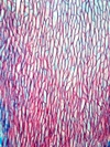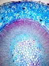 Morphology Ch, succulent plant, 15 - 25 cm Ecology Subtropical, thermophile zone Chorology Canary Islands, Gomera Xylem Indistinct rings, solitary vessels in the first part of the ring, vessels absent in the second part = intra-annual tangential bands of fibers, pervasive parenchyma in the first part of the ring, whole ring Rayless (= difference to Sempervivum tectorum and Jovibarba), crystal sand present. Xylem-Code Phloem Distinct sieve cell groups, parenchyma in radial rows, with crystal sand in the phloem and the pith, often in idioblasts. Explanations For explanations please see the Feature Characteristics. | Cross section Tangential section Radial section Bark | |