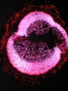 Morphology H, succulent plant, 2-8 cm Ecology Subalpine and alpine zone, medium site Chorology S-European, mountain Xylem Distinct rings, semi-ring porous, solitary vessels solitary or in groups, vessels only in the first part of the ring, vessels absent in the second part = intra-annual tangential bands of fibers, compact fibre ring,pervasive parenchyma, crystals absent. Similar to Sedum alpestre. Xylem-Code Phloem Uniform structure, crystals absent. Explanations For explanations please see the Feature Characteristics. | Cross section Bark | |