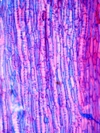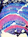 Morphology Ch, succulent plant, 20-40 cm Ecology Hill and mountain zone, dry site Chorology European Xylem Distinct rings, semi-ring porous, vessels solitary and in groups, vessel diameter <20mµ, vessel frequency 200 ¿ 500 mm2, reticulate vessel-pitting, intra-annual tangential bands of fibers, pervasive parenchyma, rayless, interxylary cork bands, very small crystal druses. Xylem-Code Phloem Uniform anatomy, distinct sieve cell groups parenchyma in radial rows, parenchyma cells with tannins, crystals absent, with crystal sand, with prismatic crystals, with crystal druses, with acicular crystals. Explanations For explanations please see the Feature Characteristics. | Cross section Tangential section Bark | |
