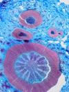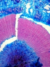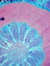Morphology H, succulent plant, 10-20cm Ecology H, succulent plant, 10-20cm Chorology SE-European, mountaine Xylem Indistinct rings, solitary vessels in the first part of the ring, vessels absent in the second part = intra-annual tangential bands of fibers, pervasive parenchyma in the first part of the ring, first part of the ring with very large rays, later part rayless, few small crystals druses. Xylem-Code Phloem Distinct sieve cell groups parenchyma in radial rows, with crystal sand Explanations For explanations please see the Feature Characteristics. | Cross section Tangential section Radial section Bark | |