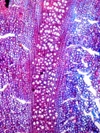 Morphology H, 10-20cm Ecology subalpine, alpine, dry site Chorology subalpine, alpine, dry site Xylem Distinct rings, semi-ring porous, vessels solitary and in small clusters, vessel diameter <25-30mµ, scalariform perforations with 1-3 bars, vessel frequency 200-500 mm2, scalariform vessel-pitting, fibers with smallround pits (fiber tracheids), parenchyma mostly paratracheal or pervasive, rays very large and confluent to the vessel/bire strips, the vessel/fibere tissue remains as small radial strips. Crystal druses in the rays, absent in the vessel/fiber strips. Xylem-Code Phloem Uniform phloem and cortex. Circle of cells with dark substances. Phloem, cortex and pith with many crystal druses. Explanations For explanations please see the Feature Characteristics. | Cross section Tangential section Radial section Bark | |