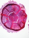 Morphology H,C, 20-60cm Ecology Mountain, subalpine, normal site Chorology Alpine, Carpathian Xylem Indistinct rings, diffuse porous, vessels solitary, vessel diameter <20mµ, fibers absent, vessel frequency 200-500 mm2, reticulate vessel-pitting, ring shake, fibers missing, pervasive parenchyma, rayless, crystals absent. Xylem-Code Phloem Uniform phloem and cortex Explanations For explanations please see the Feature Characteristics. | Cross section Radial section | |