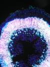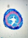 Morphology T, 2-8cm Ecology Alpine, normal site Chorology SW-European, mountaine Xylem Only one ring, vessels hardly to distinguish from fibers. With medullary phloem Xylem-Code Phloem Little sieve element clusters, often uniform cortex. Explanations For explanations please see the Feature Characteristics. | Cross section | |