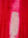 Morphology P. 0,5-2m Ecology Mountain,subalpine, normal site Chorology European, SW-Asiatic Xylem Distinct rings, diffuse porous, semi-ring porous, vessels solitary and in groups, scalariform perforations, partial scalariform intervessel pits intervessel pits opposite, with septate fibers, parenchyma difficult to recognize, ray width uni-to multiseriate, heterocellular. Xylem-Code Phloem Tangential layers of collapsed sieve cells, tangential bands of crystal druses. Explanations For explanations please see the Feature Characteristics. | Cross section Tangential section Radial section Bark | |