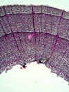 Morphology P, 1-1,5m Ecology Subalpine, normal site Chorology E and Central Asia, Siberia Xylem Distinct rings, diffuse porous, semi-ring porous, vessels solitary and in groups, scalariform perforations, partial scalariform intervessel pits intervessel pits opposite, parenchyma difficult to recognize, ray width uni-to multiseriate, heterocellular. Xylem-Code Phloem Slide absent Explanations For explanations please see the Feature Characteristics. | Cross section Tangential section | |