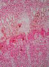 Morphology H 40-100cm Ecology Foothills Chorology S-E European Xylem Mostly only one ring, sometimes biannual then with distinct rings, semi-ring porous, vessels solitary, paratracheal parenchyma, thin walled marginal parenchyma, rayless in cross-section. Xylem-Code Phloem Indistinct tangential layers of collapsed sieve cells, radial rows of parenchyma cells, indistinct dilatations, few groups of sclereids in primary bark. Remarks Cross section: Explanations For explanations please see the Feature Characteristics. | Cross section Bark | |
