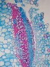 Morphology Helophyt, 30 ¿ 80cm Ecology Foothills, montane, wet sites Chorology Cosmopolite Xylem No rings, single tangential enlarged vascular bundles and a small band of xylem around a big pith, paratracheal parenchyma, rayless. Xylem-Code Phloem More or less homogeneous parenchymatic tissue, No tangential layers of collapsed sieve cells, radial rows of parenchyma cells, no dilatations. Remarks Cross section: Explanations For explanations please see the Feature Characteristics. | Cross section Bark | |