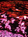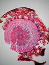 Morphology H, 8-30 cm Ecology subalpine, alpine, medium site Chorology European-mountain Xylem Distinct rings, semi-ring porous, vessels solitary and in groups, simple perforations, vessel diameter in earlywood 30 - 40µm, fibers distinctly bordered, apotracheal and marginal parenchyma, ray width 1-3 cells, all ray cells upright. Xylem-Code Phloem With sieve cell groups. Old sieve cells not collapsed, distinct ray dilatations, groups of sclereids in cortex. Crystals absent. Explanations For explanations please see the Feature Characteristics. | Cross section Bark | |