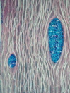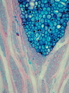 Morphology Z, parasite, on Pinus sylvestris, 30-50 cm Ecology hill and mountain zone, medium site Chorology Eurasian Xylem Indistinct rings (polarized light), diffuse porous, vessels in long radial multiseriate rows, simple perforation, vessel perforation opposite and gash-like, vessel diameter in earlywood 20-30µm, fiber pits minutely bordered, fibers very thick-walled, apotracheal and paratracheal parenchyma, ray width 1-8, often confluent to fiber tissue, all ray cells upright. With prismatic crystals. Xylem-Code Phloem Slide missing Explanations For explanations please see the Feature Characteristics. | Cross section Tangential section Radial section | |