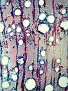 Morphology shrub, -1,5m Ecology arid zone, desert Chorology Eurasian deserts Xylem Distinct rings, ring porous, vessels mostly solitary,vessel diameter in earlywood 100- 180µm, vessel frequency 100-200 mm2, simple perforations, fibers with small, minutely bordered pits, vestured pits, fibers full of starch, paratracheal and apotracheal parenchyma, storied axial parenchyma, homocellular rays width 3-4 cells, without crystals Xylem-Code Phloem No tangential layers of collapsed sieve cells, tangential rows of sclerenchymatic groups. With crystal druses. Explanations For explanations please see the Feature Characteristics. | Cross section Tangential section Radial section Bark | |