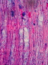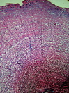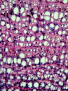 Morphology H, 10-20cm Ecology mountain zone, dry site Chorology Western North America Xylem Distinct rings, semi-ring porous, vessels solitary and in small groups, vessel diameter 20 ¿ 50µm, vessel frequency 200-500 mm2, simple perforations, gash-like vessel- pits fibers thin to thick-walled apotracheal and marginal parenchyma, rayless Xylem-Code Phloem Uniform phloem and cortex, with silica bodies. Explanations For explanations please see the Feature Characteristics. | Cross section Tangential section Radial section Bark | |