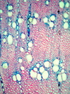 Morphology H, 10-40 cm Ecology mountain zone, dry site Chorology Western North America Xylem Distinct rings, semi-ring porous, vessels in groups arranged in tangential rows, vessel diameter 20 ¿ 50µm, vessel frequency 200-500 mm2, simple perforations, fibers thick -walled, paratracheal parenchyma, ray width 1-2cells, heterocekkular with 1-4 square cells Xylem-Code Phloem With sclereids, without crystals. Explanations For explanations please see the Feature Characteristics. | Cross section Tangential section | |