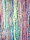 Morphology TL, 1 - 3 m Ecology hill and mountain zone, medium site Chorology Eurasian Xylem Biannual root collar of the liana-shoot: Distinct rings, semi-ring porous, large solitary vessels, mostly solitary, vessel diameter 50-100µm, vessel frequency 100-200 mm2, simple perforations, fibers thin to thick walled, paratracheal parenchyma, rayless. Annual liana-shoot: Only one ring, ring with large vessels, mostly siphonostele with separated vascular bundles. Xylem-Code Phloem Phloem uniform, the inner cortex consists on a ring of thick walled fibers and the outer cortex on thin walled parenchyma cells. Explanations For explanations please see the Feature Characteristics. | Cross section Tangential section Radial section Bark | |