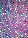 Morphology C, 50-80cm Ecology hill zone, coast Chorology Western North America Xylem Distinct rings, diffuse porous, vessels solitary, and in short radial multiples, vessel diameter 20 ¿ 50µm, vessel frequency 100-200 mm2, simple perforations, fibers thin to thick-walled, paratracheal parenchyma, ray width 4->10 cells, rays with exclusively procumbent ray cells, exclusively square and upright ray cells, without crystals Xylem-Code Phloem Groups of sieve cells, groups of sclereids in phloem and cortex. Without crystal druses, Explanations For explanations please see the Feature Characteristics. | Cross section Tangential section Radial section Bark | |