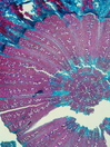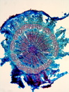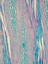 Morphology H, 10-20cm Ecology Hill and mountain zone, dry site Chorology Eurosiberian, N-American Xylem Distinct rings, semi-ring porous, vessels solitary and in radial rows, vessel diameter 20 ¿ 50µm, vessel frequency 200-500 mm2, simple perforations, groups of thick-walled fibers, pervasive and paratracheal parenchyma, thin walled marginal parenchyma, Xylem-Code Phloem With small groups of sieve cells, radial rows of sclerenchyma cells, distinct ray dilatations, With few crystal druses. Explanations For explanations please see the Feature Characteristics. | Cross section Tangential section Bark | |