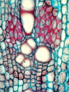 Morphology H, 100 -200 Ecology hill and mountain zone, moist site Chorology Eurasian Xylem Distinct rings, semi-ring porous, vessels mostly solitary or in small groups, vessel diameter 20 ¿ 50µm, vessel frequency 100-200 mm2, simple perforations, siphonostele consisting on single vascular bundles, fibers thin to thick-walled, in small groups, extended pervasive and little paratracheal parenchyma, ray width 3->10 cells, exclusively square and upright ray cells, with crystal druses in the rays. Xylem-Code Phloem Distinct ray dilatations, groups of sclereids at the outside of the phloem, with few crystal druses. Explanations For explanations please see the Feature Characteristics. | Cross section Tangential section Radial section Bark | |