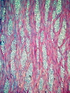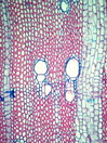Morphology shrub, -1,5m Ecology subtropical, thermophile zone, medium site Chorology Macaronesian Xylem Indistinct rings, vessels in short radial multiples, vessel diameter 20 ¿ 50µm, vessel frequency 100-200 mm2, simple perforations, fibers thin to thick-walled, paratracheal parenchyma, ray width 2-6 cells, exclusively square and upright ray cells, without crystal druses Xylem-Code Phloem Distinct ray dilatations, radial groups of sclereids in phloem and cortex. With crystal druses. Explanations For explanations please see the Feature Characteristics. | Cross section Tangential section Radial section | |