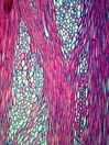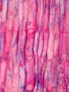 Morphology C, 50-80cm Ecology subtropical, Pine zone, medium site Xylem Distinct rings, diffuse porous, vessels solitary and short radial multiples, vessel diameter 20 ¿ 50µm, vessel frequency 100-200 mm2, simple perforations, siphonostele consisting on single vascular bundles, fibers thin to thick-walled, paratracheal parenchyma, ray width 3->10 cells, exclusively square and upright ray cells, without crystals Xylem-Code Phloem distinct ray dilatations, radial groups of sclereids in phloem and cortex. With crystal druses, Uniform cortex Explanations For explanations please see the Feature Characteristics. | Cross section Tangential section Radial section Bark | |